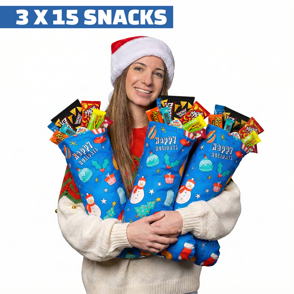 Attrapez non pas une, ni deux, mais PAS MOINS DE 3 BAS DE L'ÉPIPHANIE bourrés de snack internationaux, rien à voir avec les bonbons ennuyeux et habituels. Réalisé en doux et chaud polaire de très haute qualité, le Bas de l'Épiphanie de American Uncle cache pas moins de 15 snack exclusifs, sucrés et salés, sélectionnés parmi les best-sellers et les nouveautés du moment.