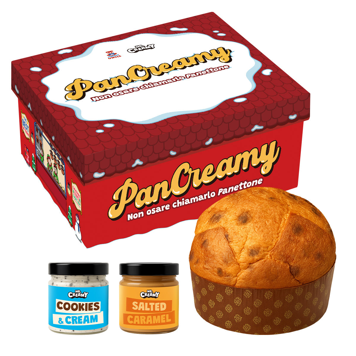 PanCreamy est la réinterprétation définitive du Panettone : un dessert de Noël ultra moelleux qui vous séduira dès la première bouchée ! L’appeler Panettone serait une insulte, PanCreamy c’est bien plus ! Dans la boîte, en effet, vous trouverez deux crèmes à tartiner Mr.Creamy aux saveurs choisies par vous !